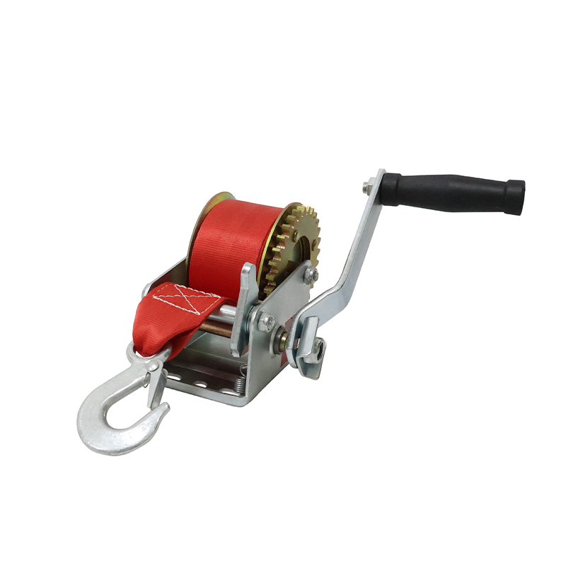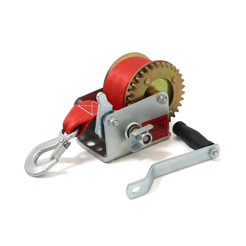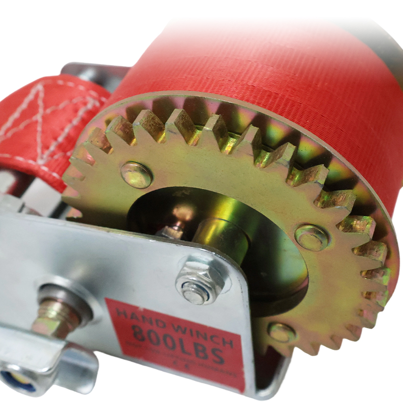 The portable hand-cranked winch from the original manufacturer can be customized with colored webbing